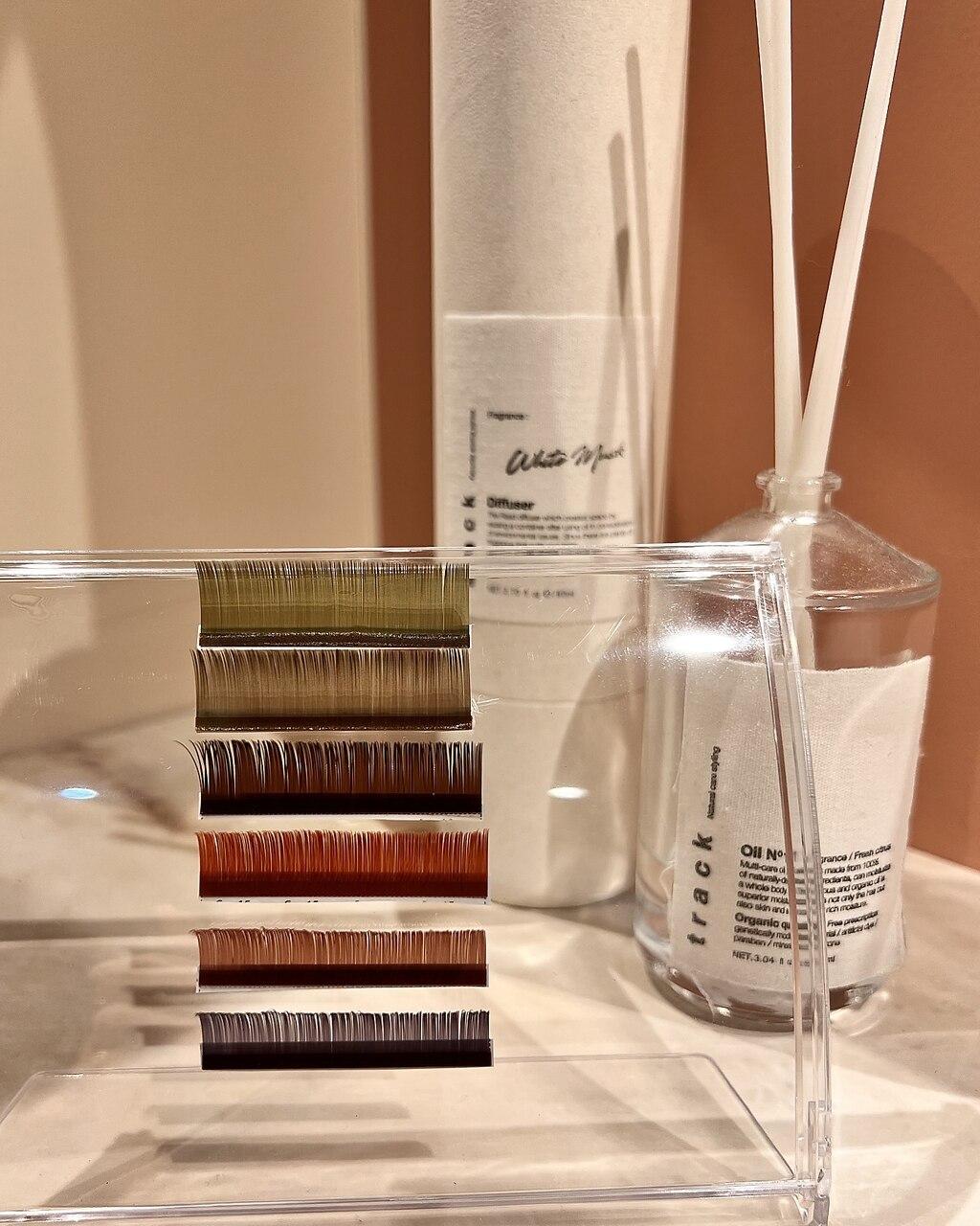 付け心地が軽く高持続の人気なフラットラッシュから6色のカラーエクステが選べます♪ブラウン、グレージュ、モーブピンク、テラコッタ、ディープオリーブ、アッシュパープル(J/C/Dカール)